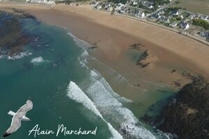 P1630413_2023-09-30 plage Valentin à marée basse avec ses surfeurs, rue de la Grande Vallée, av. Alain Bouchard, Morvan, René de l’Espine
